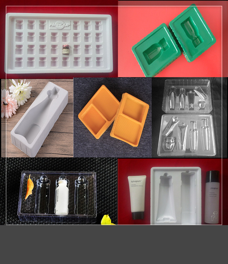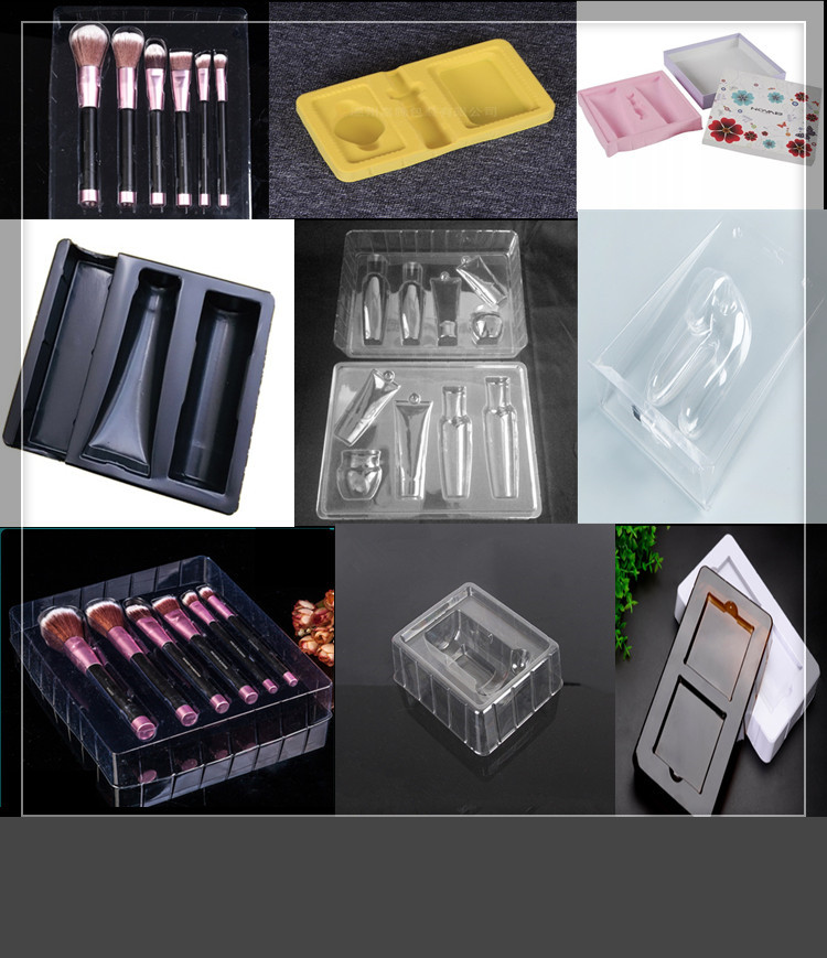 托盤:也叫塑料內托,采用吸塑工藝將塑料硬片制成特定凹槽的塑料,將產品置于凹槽內,起到保護和美化產品的作用。